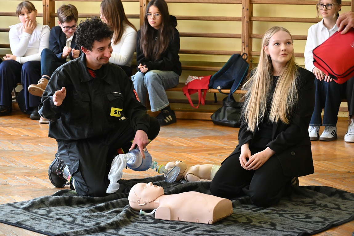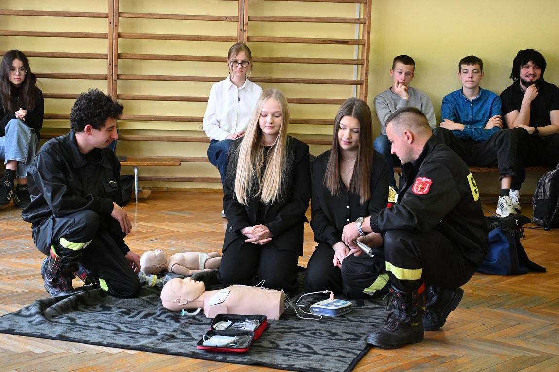 Dodatkową atrakcją wydarzenia był pokaz pierwszej pomocy zorganizowany przez druhów z OSP Jadowniki. Uczestnicy chętnie brali w nim udział, zdobywając praktyczne umiejętności i utrwalając wiedzę o tym, jak pomagać w sytuacjach zagrożenia życia.