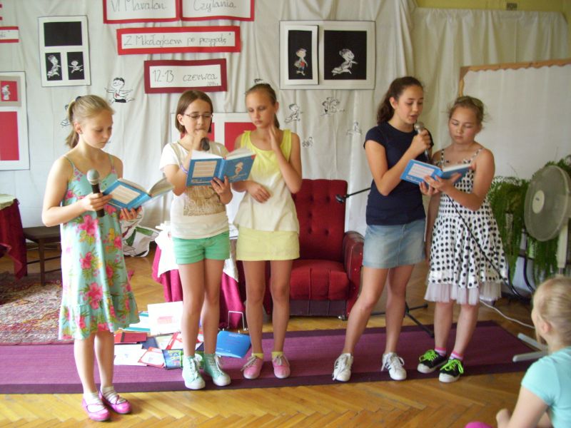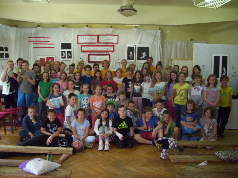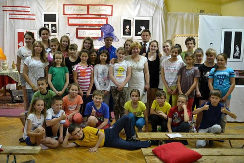 VI Wielki Maraton Czytania w Publicznej Szkole Podstawowej nr 2 w Brzesku już za nami. Tym razem przebiegał on pod hasłem „Z Mikołajkiem po przygodę” i trwał całą dobę z 12-go na 13 czerwca od godziny 10.00. Towarzyszyła mu myśl przewodnia: „ Dziecko, które czyta, stanie się dorosłym, który myśli.”Koordynatorką imprezy była polonistka Agata Podłęcka. Goście i gospodarze przez 24 godziny czytali wszelkie opowiadania o sympatycznym chłopcu Mikołajku i jego kolegach – bohaterach ukochanych przez dzieci książek Sempe i Gościnnego. Mikołajek obchodzi bowiem 55. rocznicę urodzin.Przez zamienioną w świat opowiadań salę gimnastyczną przewinęło się mnóstwo osób, nie sposób ich wszystkich przeliczyć. Samych odważnych, czytających gości było ponad 70. Tradycyjnie maraton rozpoczął burmistrz Grzegorz Wawryka, a zakończyła przy głośnym odliczaniu dzieciaków, na po brzegi wypełnionej sali dyrektor Urszula Białka. Wśród czytających gości nie zabrakło wiceburmistrza Jerzego Tyrkiela, dyrektor MiPBP w Brzesku Marii Marek, dyrektor MOPS Bogusławy Czyżyckiej – Paryło, dyrektor PSP nr 3 w Brzesku Doroty Wójcik, komendanta Powiatowego Policji w Brzesku insp. Romana Gurgula, rzecznika brzeskiej Policji Eweliny Budy, wiceprzewodniczącego RM Krzysztofa Ojczyka, historyka i artysty malarza Jerzego Wyczesanego, księży z Parafii Miłosierdzia Bożego – obecnego proboszcza Wojciecha Wernera, proboszcza emeryta Józefa Mularza i wikarych, radnej Katarzyny Pacewicz – Pyrek, przedstawicielek Saloniku „Petersówka” z Zuzanną Peters – Musiał na czele, emerytowanego dyrektora LO w Brzesku Józefa Kubasa i wielu innych zacnych gości, w tym absolwentów, którzy przyjechali poczytać nawet z Krakowa. Po raz kolejny nie zawiedli najmłodsi maratończycy wraz z wychowawcami z Publicznego Przedszkola nr1, Publicznego Przedszkola nr4 i Publicznego Przedszkola z Oddziałami Integracyjnymi, im. Św. S. Faustyny.Nie zabrakło też niespodzianek. Szkołę odwiedzili uczniowie Publicznego Gimnazjum nr 1 wraz z opiekunką Katarzyną Licak, którzy podarowali barwny transparent z wizerunkami postaci z „Mikołajka”. Przed północą niespodziewanie zjawił się radny Brzeska i promotor Teatru Solskiego w Tarnowie Krzysztof Bogusz w asyście kapelusznika z „Alicji w Krainie Czarów”. W postać wcielił się aktor teatru Piotr Hudziak. Była to jedna z największych atrakcji nocy czytania.Przez całą noc w szkole czuwało 110 dzieci ze szkoły i młodzieży z Grupy Teatralnej, przy parafii Miłosierdzia Bożego w Brzesku, oraz 9 nauczycieli i sama pani dyrektor Urszula Białka.Rodzice spisali się na złoty medal. Dzieciom bowiem niczego nie brakowało. Były słodycze, napoje, a nad ranem pyszne kanapki.Nad samym przebiegiem i przygotowaniem Maratonu pracował sztab ludzi. Dzieciaki już od zimy wykonywały prace plastyczne o Mikołajku i książeczki z przygodami urwisów przez siebie wymyślone. One też były czytane. Szczególne podziękowania należą się nauczycielkom Magdalenie Gnyli, Marii Cebuli, Beacie Derus, Magdalenie Mardoń, Magdalenie Olchawskiej i Elżbiecie Gibas.Dodatkowo w tym roku Rada Rodziców zaprosiła brzeszczan do udziału w zbiórce książek dla biblioteki szkolnej. Każda podarowana książka wzbogaciła zbiory biblioteczne i służyć będzie dzieciom, za co społeczność uczniowska składa gorące wyrazy wdzięczności.Wielkie Maratony Czytania w PSP nr2 w Brzesku stanowią już trwały element kalendarza imprez szkoły, oraz naszego brzeskiego środowiska lokalnego. Zależy nam na propagowaniu idei rozwoju kultury wysokiej, kontaktu dzieci i dorosłych z książką i jej nieocenionymi zaletami zarówno wychowawczymi jak i intelektualnymi.Jeszcze raz dziękujemy wszystkim, którzy włączyli się w niełatwe logistycznie i w odbiorze przedsięwzięcie, bowiem czytanie, a jeszcze bardziej słuchanie wymaga wysiłku i koncentracji.PSP Nr 2 -Agata Podłęcka