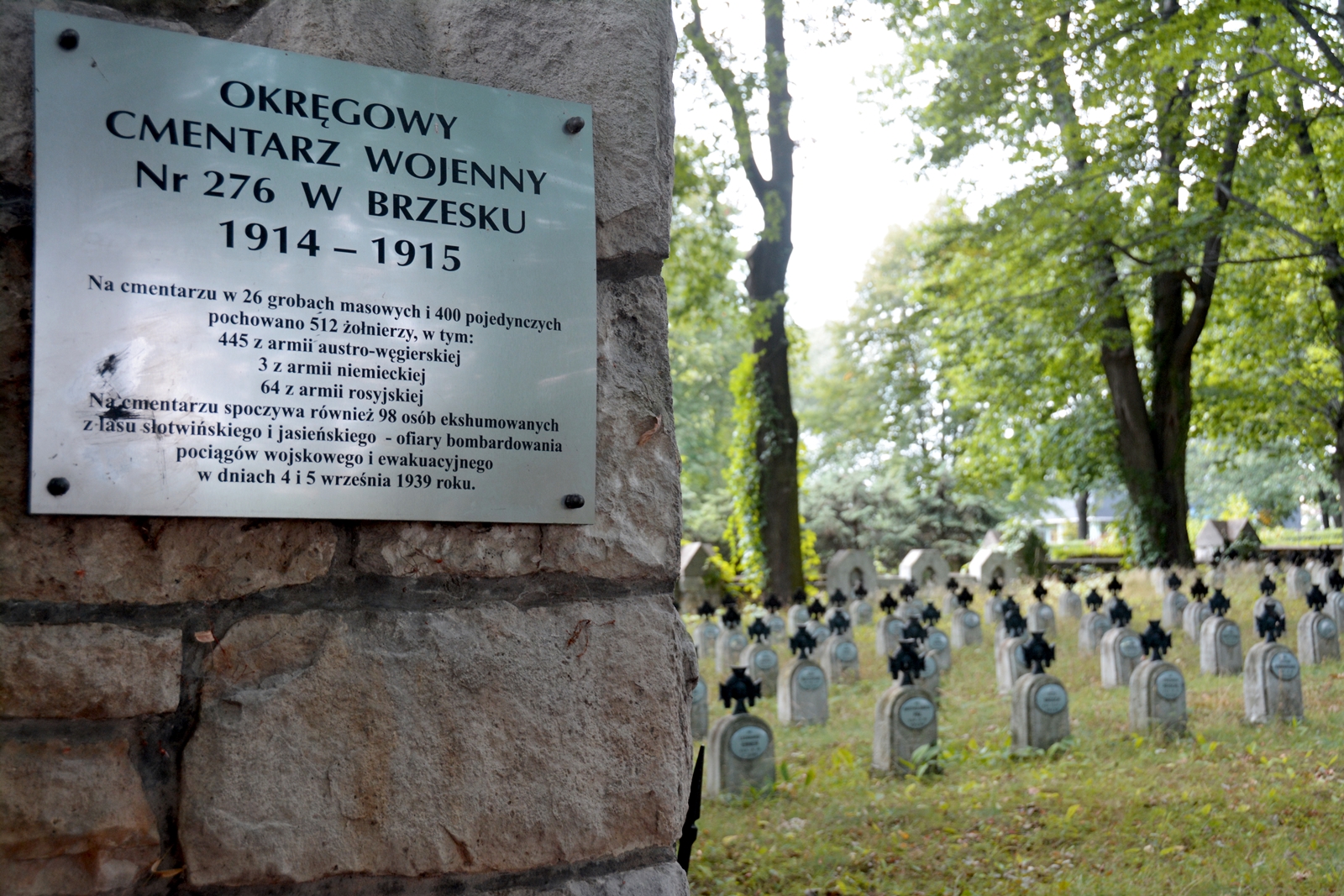 Cmentarz wojenny nr 276 w Brzesku przylega od południa do cmentarza wyznania mojżeszowego. Został założony w 1916 roku według projektu austriackiego architekta, porucznika Roberta Motka. Budowany był przez jeńców wojennych, pod kierunkiem kapitana inżyniera Karla Schöllicha. Był od cmentarzem zbiorczym dla szpitali i lazaretów, które funkcjonowały w okolicy od listopada roku 1914 do maja roku 1915, a także miejscem pochówku zmarłych żołnierzy w latach późniejszych. Na cmentarz, otoczony murem z kamienia- symbolizującym niezwyciężony szaniec przed progiem wieczności- prowadzi brama z płaskorzeźbami orłów, które symbolizują ból za straconym życiem. Na środku nekropolii wznosi się pomnik w kształcie pergoli zwieńczony krzyżem, symbolem cierpienia i śmierci – wiecznego losu człowieka. Pochowanych jest tu 507 poległych, w tym 441 żołnierzy Austro-Węgier, 63 Rosjan i 3 Niemców. Pod murem po lewej i prawej stronie znajdują się mogiły oficerów. Cmentarz wojenny wyznania mojżeszowego nr 275 również projektu kapitana Roberta Motka, położony jest w północno-zachodniej części cmentarza żydowskiego. W kwaterze tej pochodzącej z czasów I wojny światowej pochowanych jest 21 żołnierzy austro-węgierskich wyznania mojżeszowego.