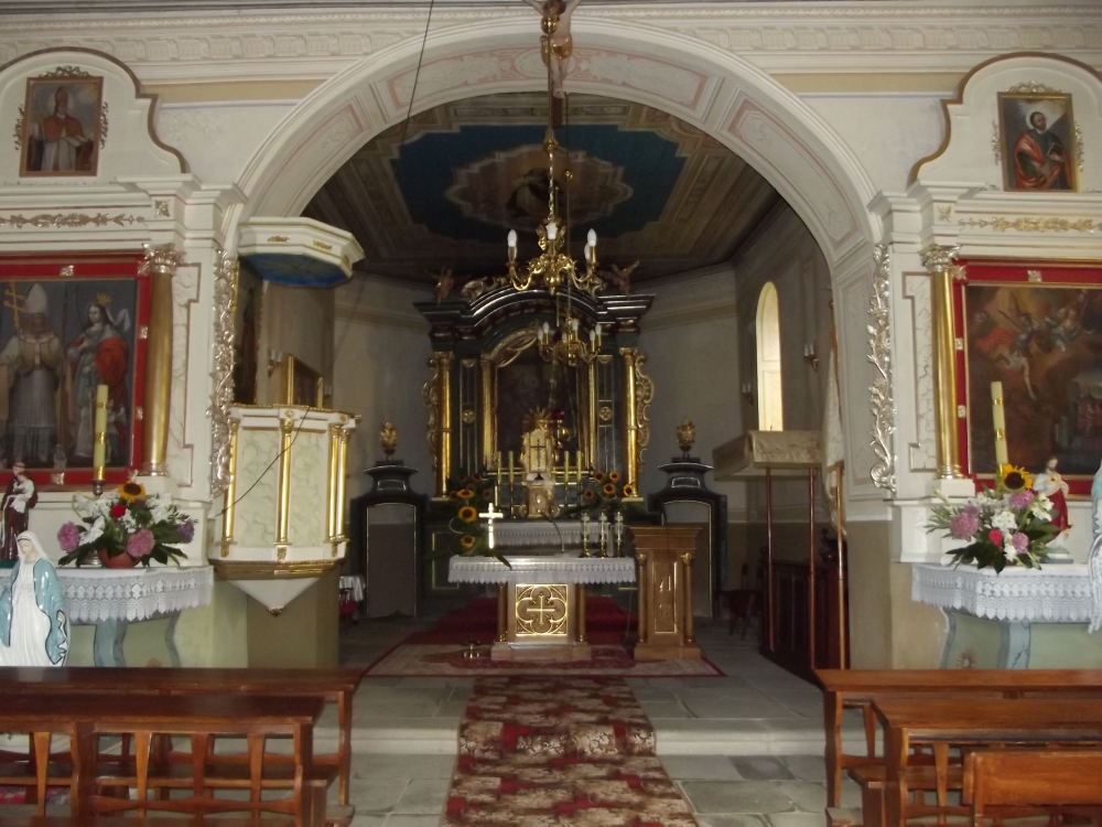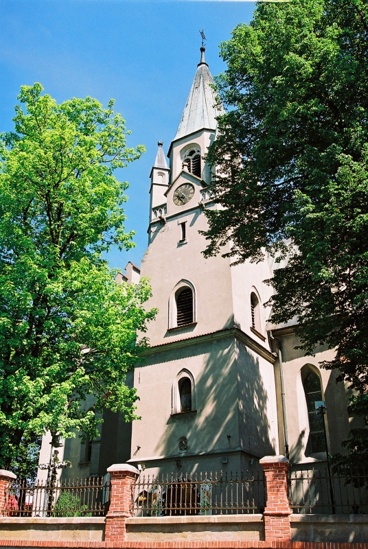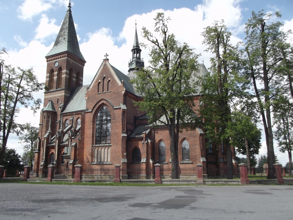 Świątynia pw. św. Bartłomieja Apostoła datowana jest na początek XVI wieku. Jest to budowla w stylu późnogotyckim z kamienia i cegły. Najcenniejsze zachowane w niej pamiątki przeszłości to; gotycki krucyfiks z drugiej połowy XV wieku, kamienna późnorenesansowa chrzcielnica z 1620 roku, malowane antependium z 1685 roku oraz 10 głosowe organy zbudowane przez znanego organmistrza Tomasza Falla.