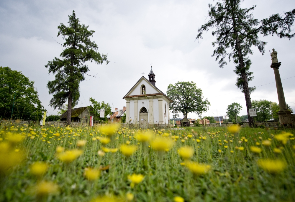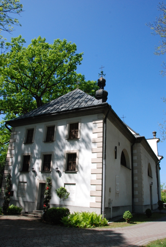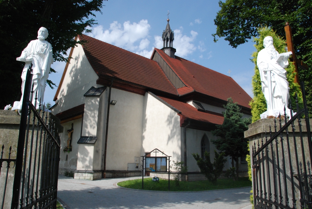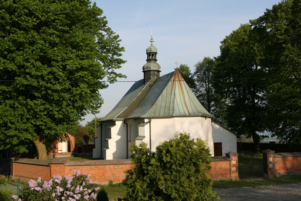 Ufundowany przez G. Lubowieckiego, sędziego krakowskiego. Szymon Adamiak wespół z G.Lubowieckim wzniósł murowaną kaplicę stanowiącą zaledwie prezbiterium obecnej świątyńki. Jakiś czas później Władysław Lubowiecki dobudował do niej od zachodu obszerny przedsionek, którego szerokość jest większa od jego długości, przekształcony pomiędzy 1732 a 1740 r. za sprawą Wojciecha i Zofii Pitlowiców w nawę. Tak uformowany kościół przebudowany został raz jeszcze w latach 1852-1854.