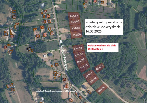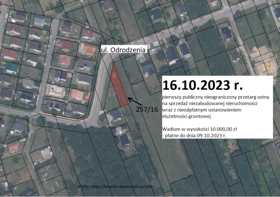 Burmistrz Brzeska ogłasza pierwszy publiczny nieograniczony przetarg ustny na zbycie niezabudowanej nieruchomości gruntowej stanowiącej własność(...)