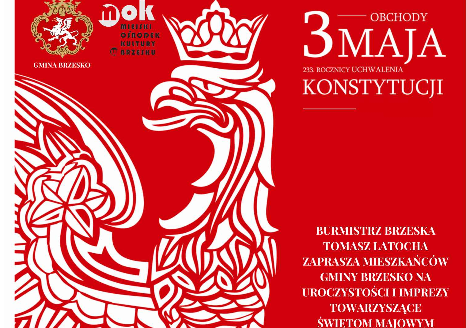 Burmistrz Tomasz Latocha oraz radni Rady Miejskiej w Brzesku zapraszają mieszkańców gminy na uroczystości i imprezy przygotowane z okazji świąt majowych.