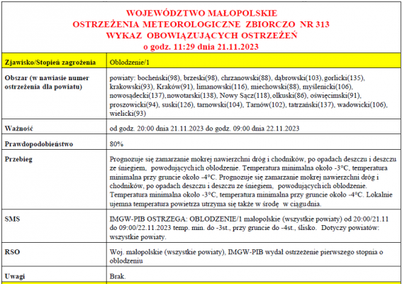 WOJEWÓDZTWO MAŁOPOLSKIE OSTRZEŻENIA METEOROLOGICZNE