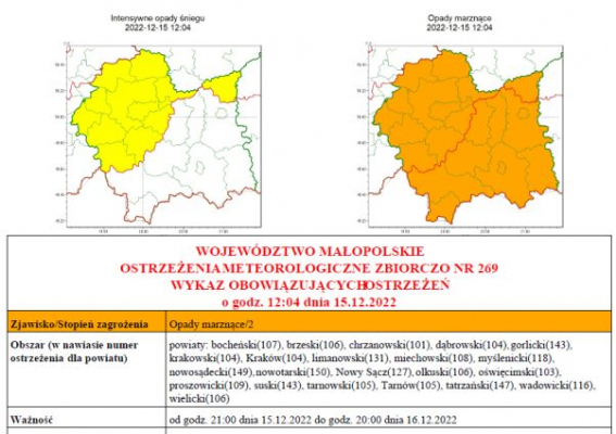 WYDZIAŁ BEZPIECZEŃSTWA I ZARZĄDZANIA KRYZYSOWEGO WOJEWÓDZKIE CENTRUM ZARZĄDZANIA KRYZYSOWEGO OSTRZEŻENIA METEOROLOGICZNE ZBIORCZO NR 323 WYKAZ OBOWIĄZUJĄCYCH OSTRZEŻEŃ o godz. 11:58 dnia 01.12.2023 ...