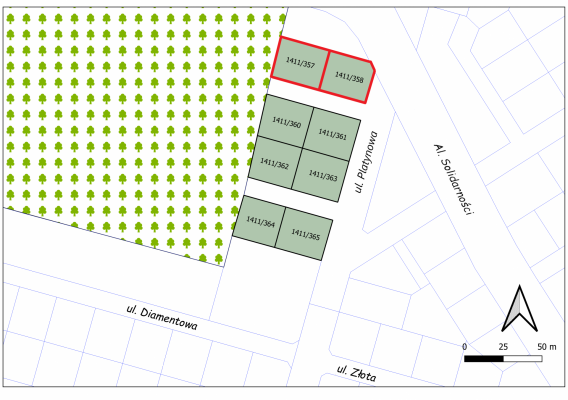 Działka numer 1411/357 znajduje się w bezpośrednim sąsiedztwie działki sklasyfikowanej jako Ls III, co wymaga uwzględnienia odpowiednich odległości wymaganych przepisami prawa w projektowaniu obiektów budowlanych.